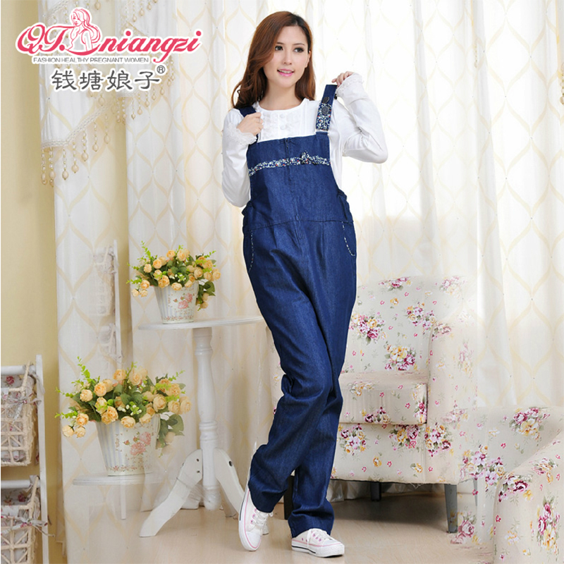 牛仔托腹裤可调节大码孕妇裤子长裤
